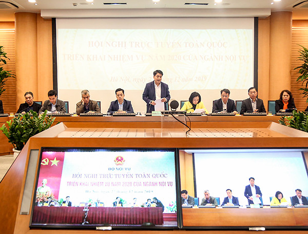 Sáng 27-12, Bộ Nội vụ tổ chức hội nghị trực tuyến toàn quốc triển khai nhiệm vụ năm 2020 của ngành, với 63 điểm cầu các tỉnh, thành phố. Phó Thủ tướng Thường trực Chính phủ Trương Hòa Bình dự và chỉ đạo hội nghị.