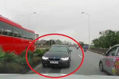 Chiếc xe “ngang ngược” hiệu BMW mang BKS 15A-287.81 tiếp tục “thi gan” với xe đi đúng chiều của anh P.T tới 1 phút, rồi sau đó mới chịu đánh lái tránh và tiếp tục di chuyển ngược chiều.
