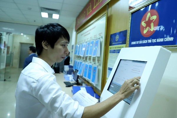 Người dân kiểm tra tiến độ xử lý thủ tục hành chính tại bộ phận 1 cửa UBND quận Hoàn Kiếm
