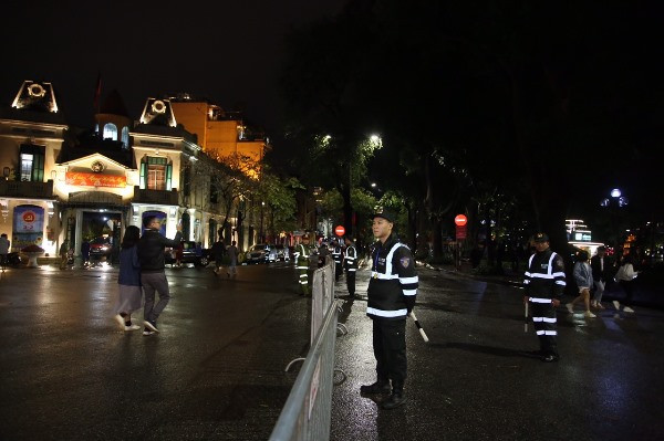 Cảnh sát cơ động CATP Hà Nội chốt trực đảm bảo ANTT khu vực xung quanh hồ Hoàn Kiếm đêm giao thừa