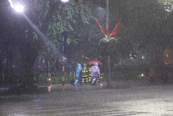 Trời mưa to, nhưng lực lượng Công an Hà Nội không rời chốt trực bảo đảm ANTT