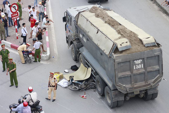 Theo thông tin ban đầu từ cơ quan điều tra, vào khoảng thời gian trên, chiếc xe tải mang BKS 30P-1301, di chuyển trên đường Khuất Duy Tiến, khi vào cua để rẽ vào đường Lê Văn Lương kéo dài thì xảy ra va chạm với chiếc xe máy Jupiter mang BKS 90F8- 3617, do chị Nguyễn Thị Hà, 1993, trú tại xã An Độ, huyện Bình Lục, tỉnh Hà Nam, chở phía sau xe là em trai tên Nguyễn Văn Thạch, sinh năm 1997.