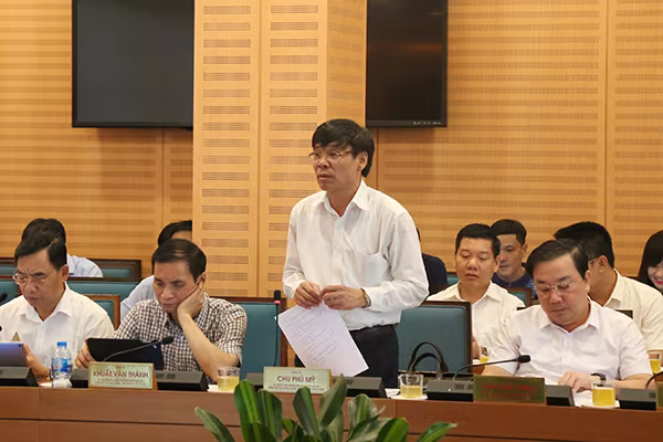 Giám đốc Sở NN&PTNT Hà Nội Chu Phú Mỹ báo cáo về công tác phòng chống dịch tả lợn Châu Phi