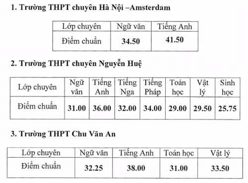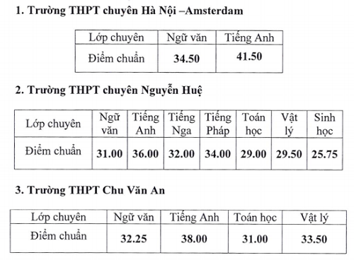 Các trường THPT chuyên Hà Nội - Amsterdam, Thanh Xuân, Trưng Vương và Chu Văn An - Tây Hồ hạ từ 1,2 đến 2 điểm.