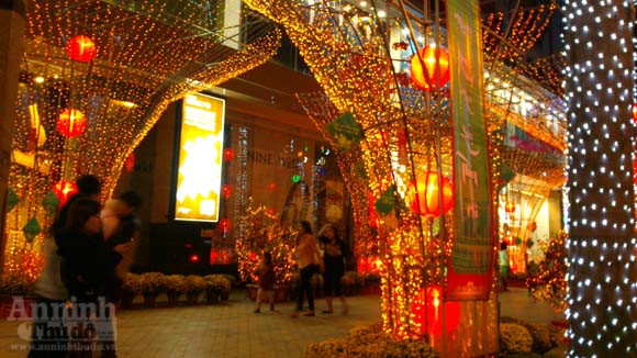 Xung quanh Trung tâm thương mại Vincom cũng rực rỡ ánh đèn, khiến ai ai cũng háo hức