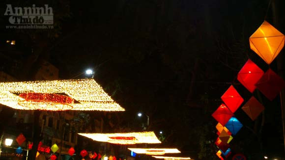 ...thì dọc phố Hàng Khay lại tươi mới với đèn lồng, đèn dây giăng kín