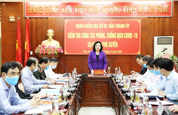 Qua kiểm tra, Phó Bí thư Thường trực Thành ủy Ngô Thị Thanh Hằng đề nghị huyện Phú Xuyên và Thanh Trì lưu ý, tình hình dịch bệnh Covid-19 đã chuyển sang giai đoạn mới, nguy cơ và mức độ lây lan cao hơn. Số trường hợp nhiễm bệnh trên địa bàn thành phố ngày càng tăng, không loại trừ khả năng dịch bùng phát.