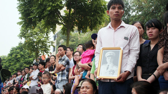 “Vợ chồng tôi có mặt ở đây từ 5h sáng, cả đêm qua hai chúng tôi đều sốt ruột không thể nào ngủ được. Đại tướng sắp về quê, sẽ chẳng còn dịp nào chào ông được nữa, chính vì thế chúng tôi ra đây từ sớm để chờ đợi được đưa tiễn Người” - ông Nguyễn Văn Tiến, cựu binh Trung đoàn 2, sư đoàn 9 miền Tây Nam Bộ vừa nói, vừa nén tiếng nấc nghẹn ngào. Tâm trạng của ông Tiến là tâm trạng chung của người dân Hà Nội không chỉ trong hôm nay mà còn suốt những ngày qua. Cũng hoà trong dòng người có mặt tại ngã tư Trần Hưng Đạo - Lê Thánh Tông từ sáng sớm, Đại tá quân y hồi hưu Vũ Hải Vân, dù đã 84 tuổi vẫn tự tay là phẳng bộ quân phục cũ, run run từng bước chân tới đây đứng sẵn trên hè phố đợi linh xa rước Đại tướng qua để ông được thực hiện một mong muốn duy nhất: Chào thủ trưởng lần cuối theo đúng nghi thức quân đội.