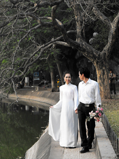 Dường như đã qua rồi cái thời cứ chụp ảnh cưới là phải kéo nhau vào studio với phông cảnh và hoa giả. Ngay cả việc tạo dáng trong công viên, trước cửa các tòa nhà to đẹp, đài phun nước cũng trở thành... xưa như Diễm. Vài năm nay, phong trào chụp ảnh quanh hồ Gươm, hồ Tây và các di tích của Hà Nội dấy lên mạnh mẽ đến mức trở thành những hình ảnh rất đẹp và thơ mộng của Hà Nội. Năm nay, tuy đã qua thời khắc thành phố tròn 1.000 tuổi, song, dư âm vẫn khiến người ta chọn những chốn này làm nơi lưu giữ khoảnh khắc đẹp của cuộc đời. Còn đa phần mùa ảnh cưới đã dịch chuyển "tâm" về những vườn hoa ven đô. Còn gì tuyệt vời hơn khi tình yêu được thăng hoa trên những sắc màu tươi sáng rực rỡ và hương thơm ngạt ngào, tinh khiết.