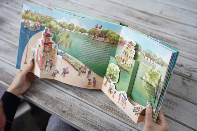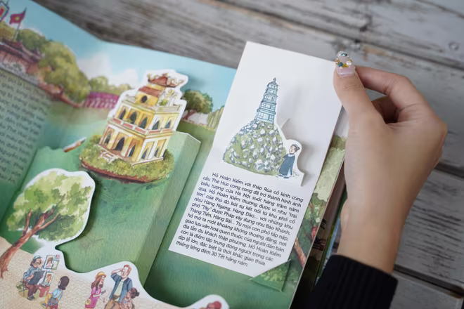 Không chỉ cung cấp thông tin, đây còn là một sản phẩm sách pop-up - sách dựng hình 3D đầu tiên về Hà Nội với tính năng tương tác với bạn đọc rất hiệu quả. 11 danh thắng của Thăng Long - Hà Nội xuất hiện độc đáo trong cuốn sách, mang lại cho độc giả các trải nghiệm khó quên.