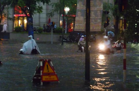Với cường độ mưa lớn kéo dài suốt 2 giờ đồng hồ liên tục, nhiều tuyến phố Thủ đô lại biến thành sông, như: Láng Hạ, Núi Trúc, Nguyễn Khuyến, Quốc Tử Giám, Phan Bội Châu…