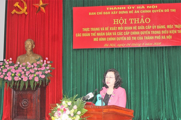 Phát biểu tại hội thảo, Ủy viên Trung ương Đảng, Phó Bí thư Thường trực Thành ủy Hà Nội Ngô Thị Thanh Hằng cho biết, Hà Nội là một trong hai đô thị đặc biệt của cả nước. Tuy nhiên, bên cạnh những kết quả đã đạt được, tổ chức và hoạt động của chính quyền tại các cấp còn có những hạn chế, tổ chức bộ máy chưa thực sự tinh gọn, hiệu quả.
