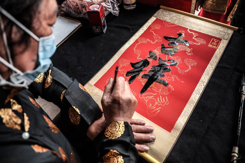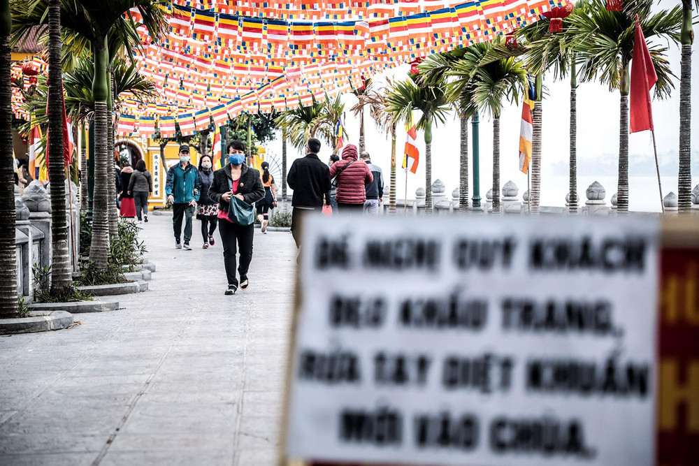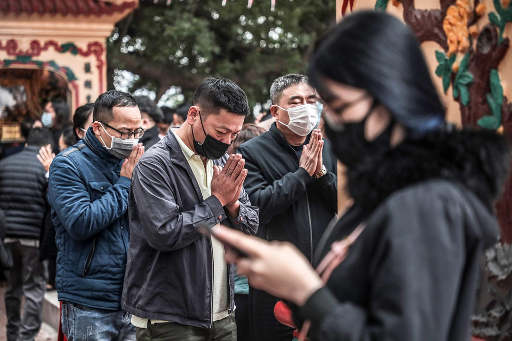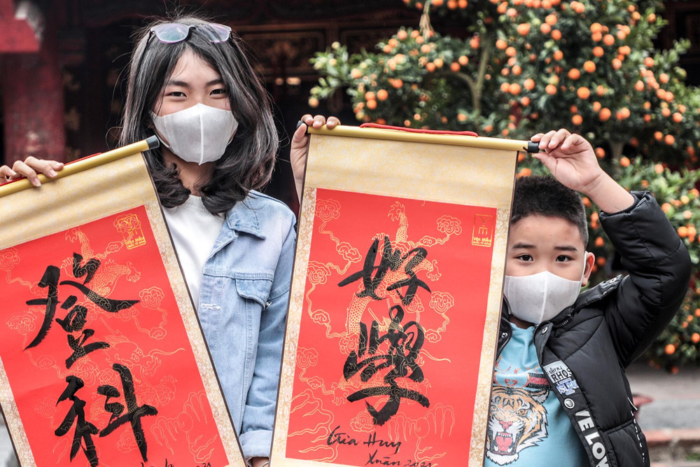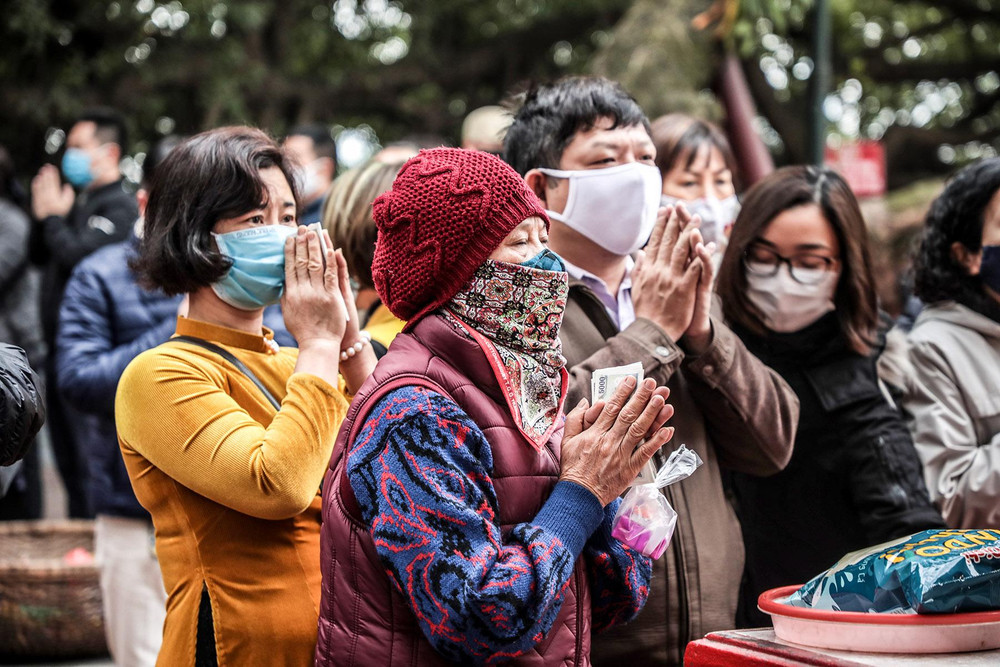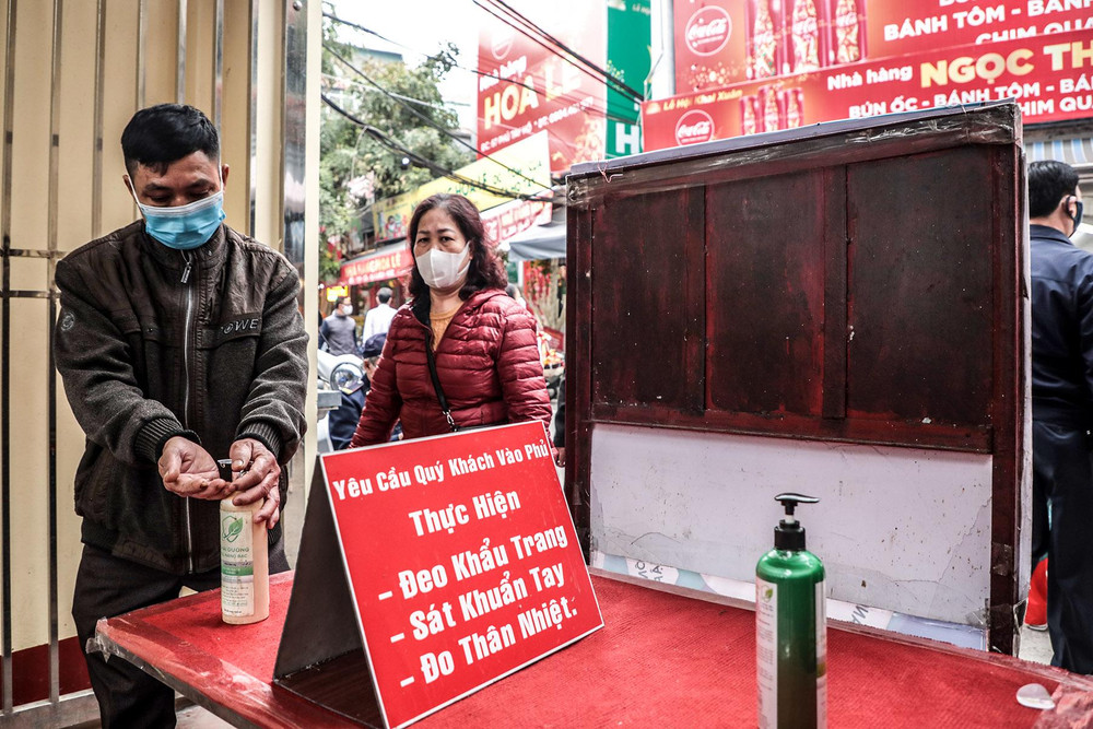 ANTD.VN - Sáng 12-2 (tức mùng 1 Tết Nguyên đán Tân Sửu), theo ghi nhận của phóng viên tại các điểm đền, chùa, phủ, danh lam ở Hà Nội vắng người hơn mọi năm. Các biện pháp phòng dịch như sát khuẩn, đeo khẩu trang được thực hiện nghiêm túc. Ông Đồ đeo khẩu trang viết chữ, người xếp hàng giữ khoảng cách để mua vé ở Văn Miếu - Quốc Tử Giám là hình ảnh ấn tượng về một Hà Nội đang quyết liệt thực hiện các biện pháp, không để dịch Covid-19 lây lan...