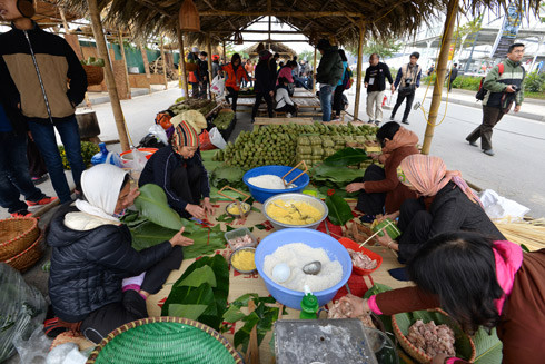 Gói bánh chưng tại Hội chợ Tết ParkCity