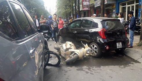 Vào khoảng thời điểm trên, chiếc xe ô tô 4 chỗ ngồi (chưa xác định được biển số) đã bất ngờ đâm vào một chiếc xe máy khiến người mẹ văng ra xa còn cháu bé bị cuốn vào gầm xe. Chiếc xe chỉ dừng lại khi đâm tiếp vào một chiếc xe ô tô cạnh đó.