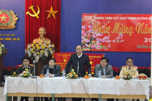 Phó Thủ tướng Nguyễn Xuân Phúc thăm và chúc Tết Phòng CSGT Đường bộ-đường sắt CATP Hà Nội
