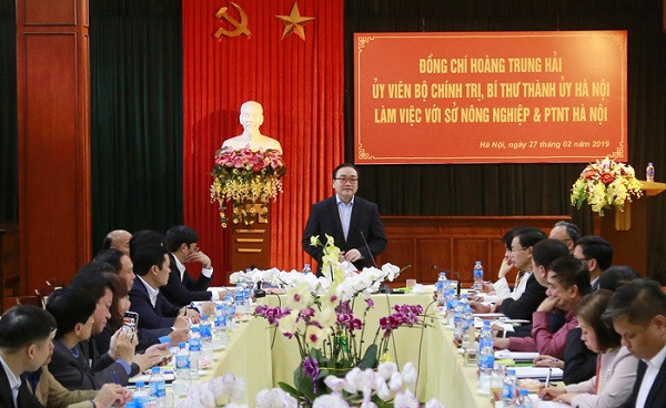 Phát biểu tại buổi làm việc, Bí thư Thành ủy Hà Nội Hoàng Trung Hải đánh giá cao những đóng góp của ngành nông nghiệp vào cơ cấu kinh tế của Thành phố, góp phần chuyển dịch cơ cấu kinh tế, nâng cao giá trị sản xuất, từ đó nâng cao thu nhập, đời sống của người nông dân.
