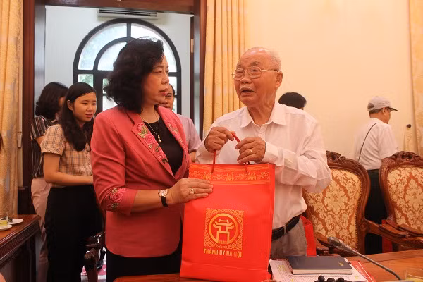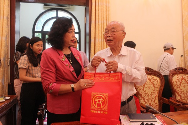 Phó Bí thư Thường trực Thành ủy Ngô Thị Thanh Hằng tặng quà, thăm hỏi sức khỏe các chiến sĩ Việt Minh thành Hoàng Diệu