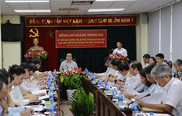 Sáng nay, 2-8, Ủy viên Bộ Chính trị, Bí thư Thành ủy Hà Nội Hoàng Trung Hải đã có buổi làm việc với Sở KH&ĐT Hà Nội về kết quả công tác 6 tháng đầu năm, nhiệm vụ trọng tâm 6 tháng cuối năm 2018.