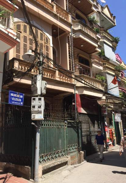 Sáng 9-8, có mặt tại khu vực, chúng tôi chứng kiến hình ảnh ngôi nhà cao 4 tầng đã bị ngả hẳn sang một bên, trông chẳng khác gì tháp nghiêng. Do nằm chung khối với ngôi nhà số 179 nên cả 2 ngôi nhà đều bị nghiêng về 1 phía kéo theo 2 ngôi nhà khác (nhà số 181 và 183) cũng bị ảnh hưởng theo. Ở phía còn lại, dù nhà 177 cách nhà 161 một ngách nhỏ (khoảng 1,5m) song ở tầng trên cùng, phần mái của 2 ngôi nhà này đã nghiêng sát vào nhau, chỉ cách khoảng 70 cm.