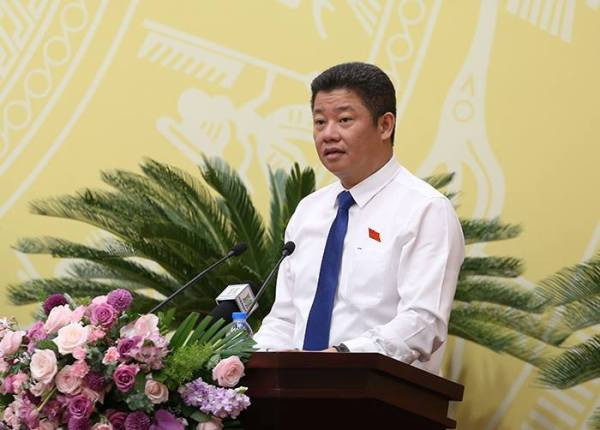 Giám đốc Sở KH&ĐT Hà Nội Nguyễn Mạnh Quyền trình bày nội dung tờ trình (Ảnh Phú Khánh)