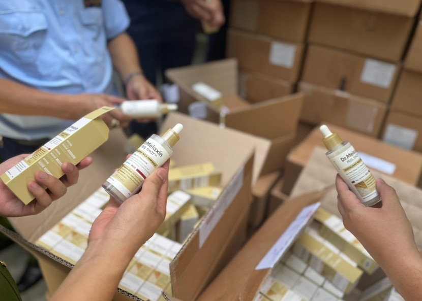 | Lực lượng chức năng thu giữ số lượng lớn mỹ phẩm có dấu hiệu vi phạm pháp luật |