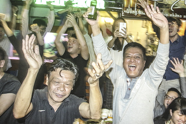 Niềm vui vỡ òa của người hâm mộ bóng đá tại Hà Nội khi U23 Việt Nam vượt qua U23 Qatar để xứng đáng bước chân vào trận chung kết U23 Châu Á