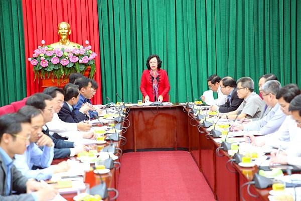 Phó Bí thư Thường trực Thành ủy Ngô Thị Thanh Hằng chỉ đạo tại cuộc họp