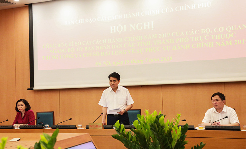 Tham luận tại Hội nghị, Chủ tịch UBND TP Hà Nội Nguyễn Đức Chung cho biết, được sự quan tâm, chỉ đạo sát sao của Chính phủ, Thủ tướng Chính phủ, Bộ Nội vụ, các Bộ, ban, ngành của Trung ương, năm 2019 và 5 tháng đầu năm 2020, công tác CCHC của thành phố Hà Nội tiếp tục có sự chuyển biến tích cực. Nhiều chỉ tiêu hoàn thành sớm và về đích trước thời hạn...