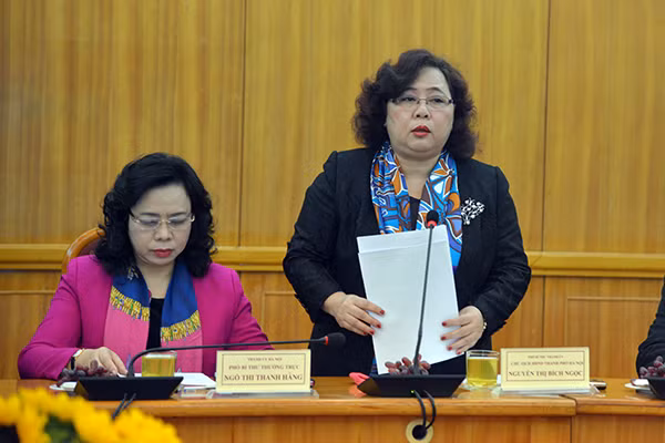 Chủ tịch HĐND TP Hà Nội Nguyễn Thị Bích Ngọc báo cáo công tác chuẩn bị bầu cử của TP Hà Nội