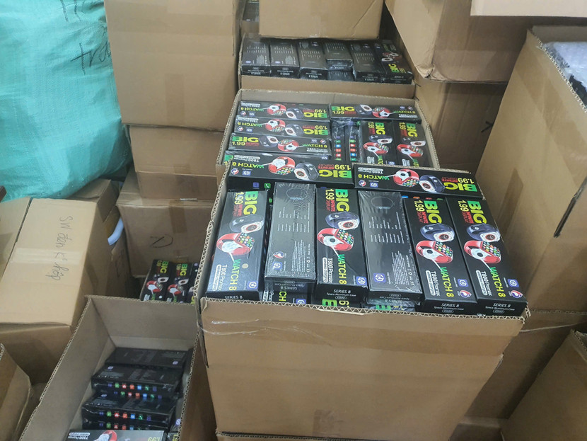 Phòng An ninh mạng và phòng chống tội phạm sử dụng công nghệ cao - Công an TP. Hà Nội phối hợp với Cơ quan An ninh điều tra tiến hành khám xét nhiều địa điểm là nơi tập kết, cất giữ hàng hóa của các đối tượng. Tại 2 căn nhà liền kề 4 tầng ở Tân Triều, Thanh Trì, Hà Nội, lực lượng chức năng phát hiện kho hàng giả với quy mô lớn, gồm: 12.200 chiếc đồng hồ thông minh; 6.800 chiếc tai nghe hiệu Marshall; 30 chiếc loa Ms Kill Bur II; 1.700 chiếc loa Emberton; 850 chiếc loa Nille; 2550 chiếc máy hút bụi Fujisu; 900 chiếc đồng hồ Omega và 475 chiếc đồng hồ Orient.