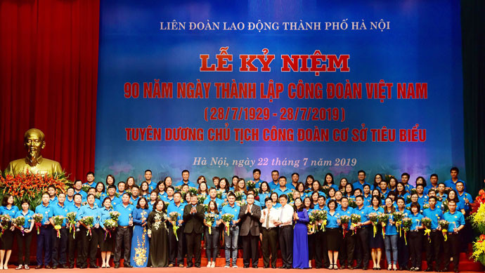 ANTD.VN - Hôm nay, 22/7, Liên đoàn Lao động TP Hà Nội đã tổ chức Lễ kỷ niệm 90 năm Ngày thành lập Công đoàn Việt Nam (28/7/1929 - 28/7/2019) và tuyên dương 90 chủ tịch công đoàn cơ sở tiêu biểu.