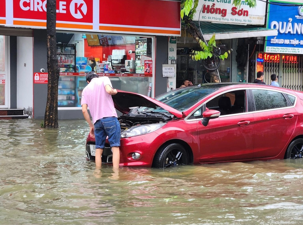 ANTD.VN - Sáng 24-7, nhiều địa điểm tại các quận, huyện của Hà Nội vẫn bị ngập cục bộ khiến giao thông đi lại gặp nhiều khó khăn. Khá nhiều phương tiện bị chết máy giữa đường.
