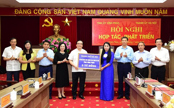 Nhân dịp này, Hà Nội tặng 3 tỷ đồng hỗ trợ thực hiện nhiệm vụ an sinh xã hội của tỉnh Vĩnh Phúc