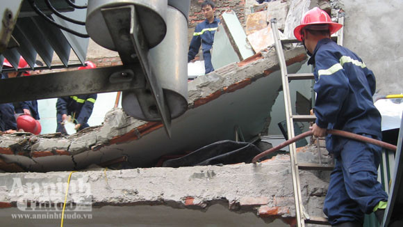 Theo nhân chứng tại hiện trường, khi đó vẫn nghe thấy tiếng kêu khóc của trẻ em nhưng 2 cháu bé do bị bê tông sập đè lên khi đang ngủ ở tầng 2 nên không thể cứu được.