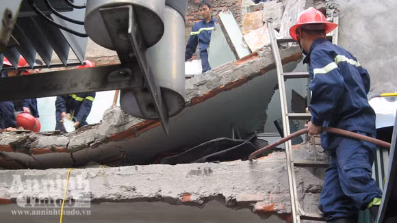 Nhận tin báo, lực lượng công an phường sở tại phối hợp cảnh sát PCCC khẩn trương tổ chức cứu người bị hại. Tuy nhiên, do ngõ vào ngôi nhà bị sập phải đi qua một khu chung cư, trần thấp nên xe cứu hộ không thể tiếp cận. Lực lượng cứu hộ chỉ có thể dùng khoan bê tông, búa, nệm hơi để nâng khối bê tông bị sập đang đè lên 2 cháu bé. Đáng tiếc là việc làm này không đáp ứng được việc cứu hộ cứu nạn tức thời, vì thế chưa thể di chuyển khối bê tông để cứu hai cháu bé.