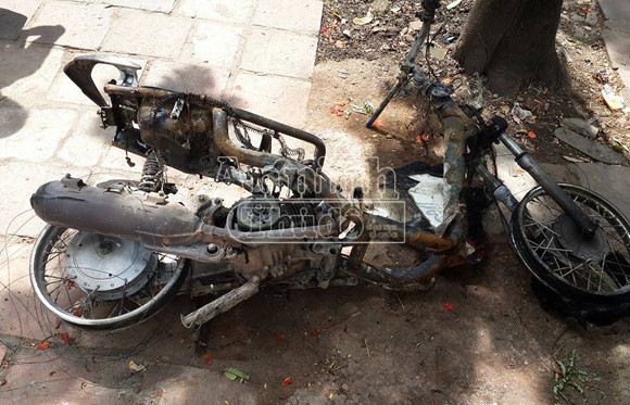 Tuy nhiên, do thời điểm xảy ra cháy có gió to, ngọn lửa bốc lên nhanh nên công tác dập lửa gặp khó khăn hơn. Sau khoảng 15 phút ngọn lửa được lực lượng chức năng khống chế dập tắt, tuy nhiên lúc này chiếc xe máy bị cháy rụi chỉ còn lại bộ khung xe.