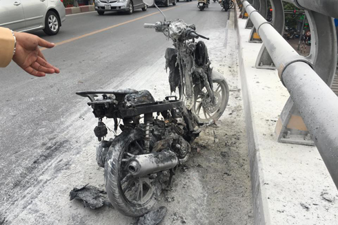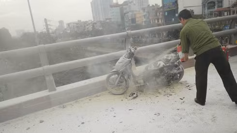 Khoảng hơn 8h sáng 6-1, chiếc xe máy tay ga do một người đàn ông trung tuổi tên Tuyến điều khiển đi theo hướng từ đường Lê Văn lương sang Láng Hạ. Khi đi lên cầu vượt Lê Văn Lương thì bất ngờ khói bốc lên ở đầu xe.