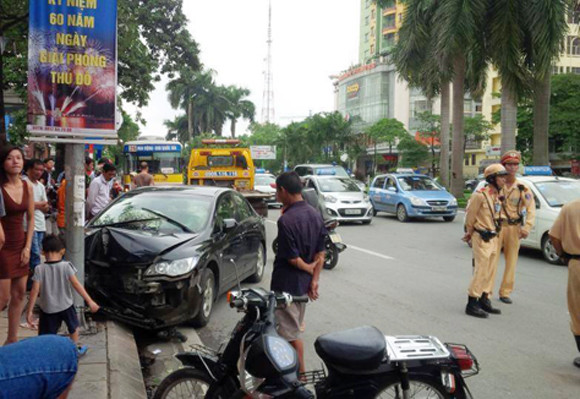Vào thời điểm trên, chiếc xe ô tô Honda Civic, do một phụ nữ điều khiển đã xảy ra va chạm với một chiếc xe buýt chạy cùng chiều trên đường Nguyễn Chí Thanh, sau đó tiếp tục va chạm với một chiếc xe máy do một người phụ nữ điều khiển. Chiếc xe ô tô chỉ dừng lại khi đâm vào một chiếc cột điện trên vỉa hè. Vụ tai nạn khiến người phụ nữ đi xe máy bị thương, được người dân đưa đi bệnh viện cấp cứu.
