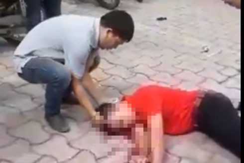 Nạn nhân được lực lượng Công an đưa vào bệnh viện cấp cứu.