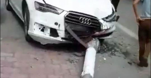 Chưa dừng lại ở đó, chiếc xe này còn tông đổ một cột điện trên vỉa hè. Ngay sau đó, lái xe ô tô Audi đã rời khỏi hiện trường vụ tai nạn.