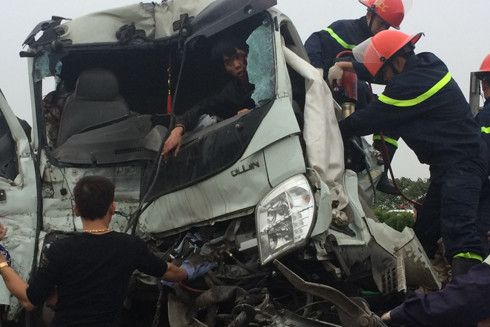 Tại hiện trường nơi xảy ra vụ việc, xác định có 1 nạn nhân mắc kẹt trong cabin xe ô tô chở thép, chỉ huy CNCH thuộc lực lượng Cảnh sát PCCC ngay lập tức chia thành các tổ triển khai công tác CNCH. Tổ thứ nhất, trấn an tinh thần nạn nhân, dùng chăn chiên giữ ấm cho nạn nhân. Tổ thứ hai, dùng phương tiện banh cắt thủy lực cắt phá dỡ phần đầu xe và di chuyển nạn nhân ra ngoài, đưa đi cấp cứu.