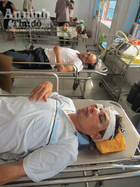 Lúc này Chủ tịch xã Nguyễn Huy Quế, Phó chủ tịch xã Dương Chí Thanh và Trưởng Công an huyện Trần Văn Sơn phải nhập viện cấp cứu với nhiều vết thương trên đầu và mặt.