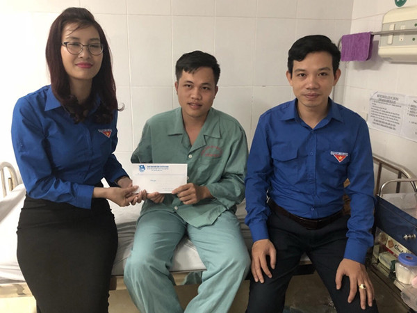 Đại diện Đoàn thanh niên huyện Yên Bình thăm hỏi tặng quà Trung úy Nguyễn Tuấn Anh