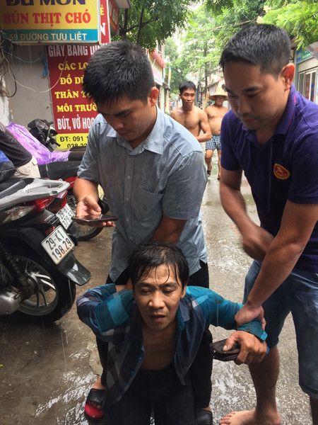 “Bị chúng tôi truy đuổi, đối tượng đã chạy theo hướng đường Tựu Liệt vào Bệnh Viện K2 Tam Hiệp sau đó rẽ vào ngõ 130 đường Tựu Liệt và lao thẳng ra ruộng rau muống cuối ngõ. Khi đó tôi và đồng chí Toàn đã lao theo và nhảy xuống ruộng bùn khống chế và bắt giữ được đối tượng”- Đại úy Nguyễn Văn Cương cho biết.