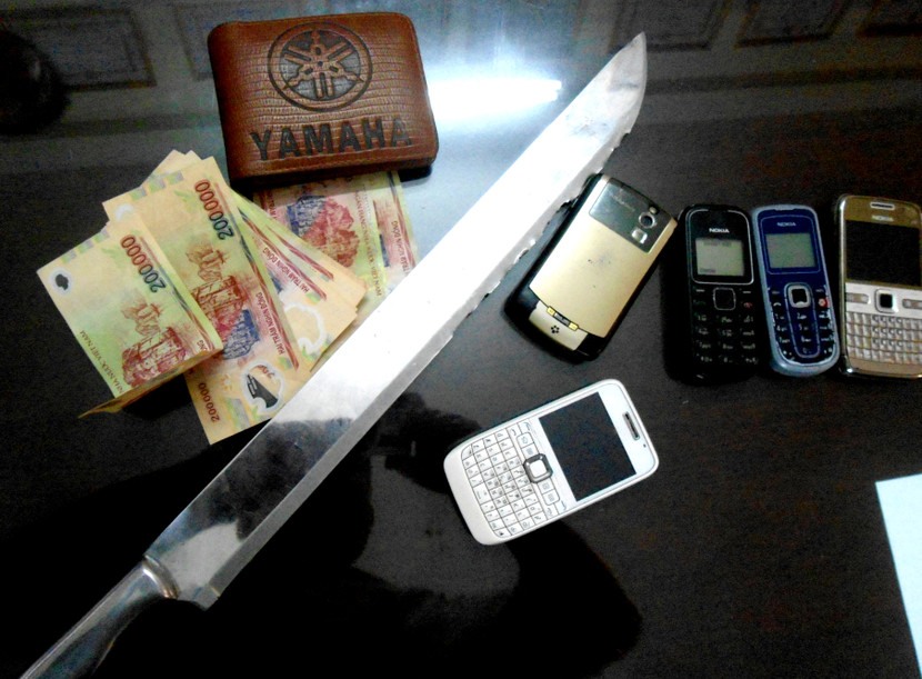 Hai tên cướp khai từ tháng 11-2011 đến nay đã cùng một số đối tượng khác gây ra nhiều vụ cướp tài sản của các đôi trai gái trên địa bàn huyện Thạch Thất. Toàn bộ tài sản và tiền cướp được, các đối tượng sử dụng chơi game online trên mạng internet. Khoảng 21h một đêm giữa tháng 8-2013, các đối tượng trên đã cùng nhau gây ra vụ cướp tài sản của đôi nam nữ, ngồi tâm sự với nhau tại khu vực gần Nhà máy xi măng Vĩnh Ngọc, huyện Thạch Thất. 21h một đêm đầu tháng 8-2013, Thái sử dụng chiếc xe Honda Dream II đã cũ của Thân (BKS: 24S1 - 1707), chở đồng bọn đi cướp chiếc điện thoại di động Nokia 1280 của một đôi nam nữ đang ngồi tâm sự tại khu vực đường Lớn, xã Dị Nậu, huyện Thạch Thất. Sau khi gây án, các đối tượng bán điện thoại lấy 150 nghìn đồng để chơi game online.