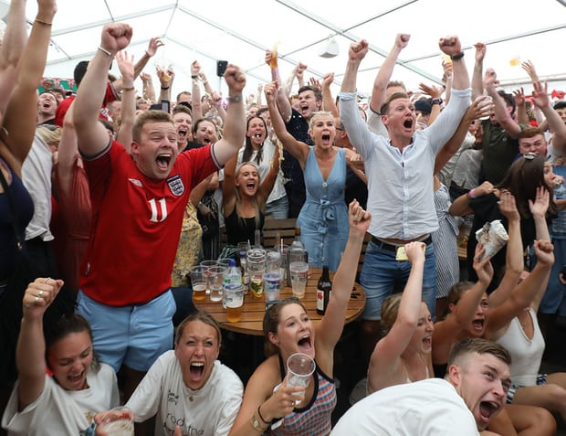 Người dân Anh ăn mừng tấm vé bán kết và bắt đầu mơ về chức vô địch lần thứ hai kể từ sau World Cup 1966.