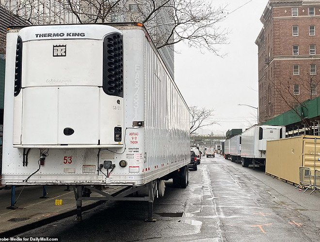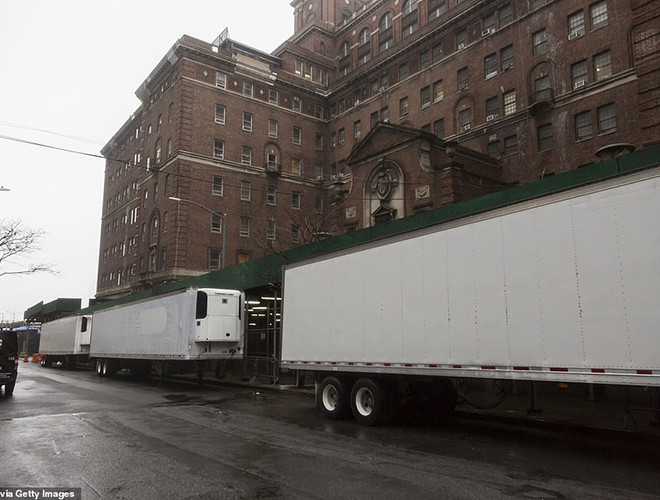 ANTD.VN - Bên ngoài một số bệnh viện ở New York, tâm đại dịch Covid-19 tại nước Mỹ hiện nay luôn có xe đông lạnh chờ sẵn để đón thi thể bệnh nhân. Chính quyền thành phố cho biết, đây là đợt triển khai “nhà xác tạm thời” lớn nhất kể từ thảm kịch khủng bố 11-9-2001. Hôm 30-3, Tổng thống Mỹ Donald Trump cho biết, kịch bản tồi tệ nhất là 2,2 triệu người Mỹ sẽ tử vong vì virus corona mới này.