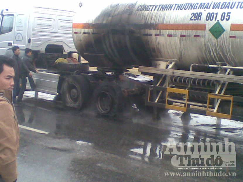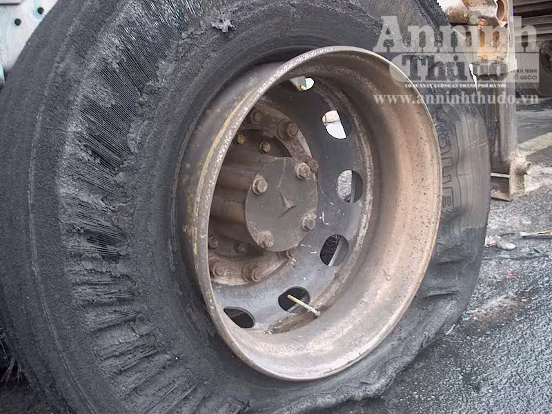 Sự việc xảy ra vào khoảng 10h sáng nay 30-12. Lái xe tải trên là anh Đỗ Duy Phương cho biết, trước đó khi đang điều khiển xe anh nhìn qua gương chiếu hậu và vô cùng hoảng hốt khi thấy phần thân kéo phía sau bên trái lửa bốc lên đùng đùng. Anh Phương phanh gấp lại mở cabin thoát ra ngoài. Lúc này ngọn lửa đã liếm gần như trọn bốn bánh xe tải.