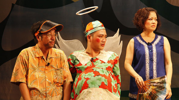 Mọi thứ trở nên đảo lộn, người đàn ông bỗng chốc phải đảm nhiệm những vai trò và thiên chức lâu nay vốn dành cho nữ giới từ mang thai, ốm nghén, ăn uống lúc sinh nở… Cũng từ đây các tình huống trớ trêu, dở khóc dở cười xảy ra khi người vợ chiếm thế thượng phong. Người chồng phải đối phó với những thói hư tật xấu của vợ, bỏ mặc chồng làm nội trợ để đi tìm những thú vui cá nhân. “Đàn ông cũng khóc” mượn những tình tiết hài hước, phi lý để truyền tải thông điệp ý nghĩa về việc xây dựng hạnh phúc gia đình. Vở kịch có sự tham gia của dàn diễn viên được các khán giả mến mộ như NSƯT Minh Vượng, NSƯT Chí Trung, NSƯT Ngọc Huyền, NSƯT Tuấn Hải, Đức Khuê, Vân Dung, Bá Anh…